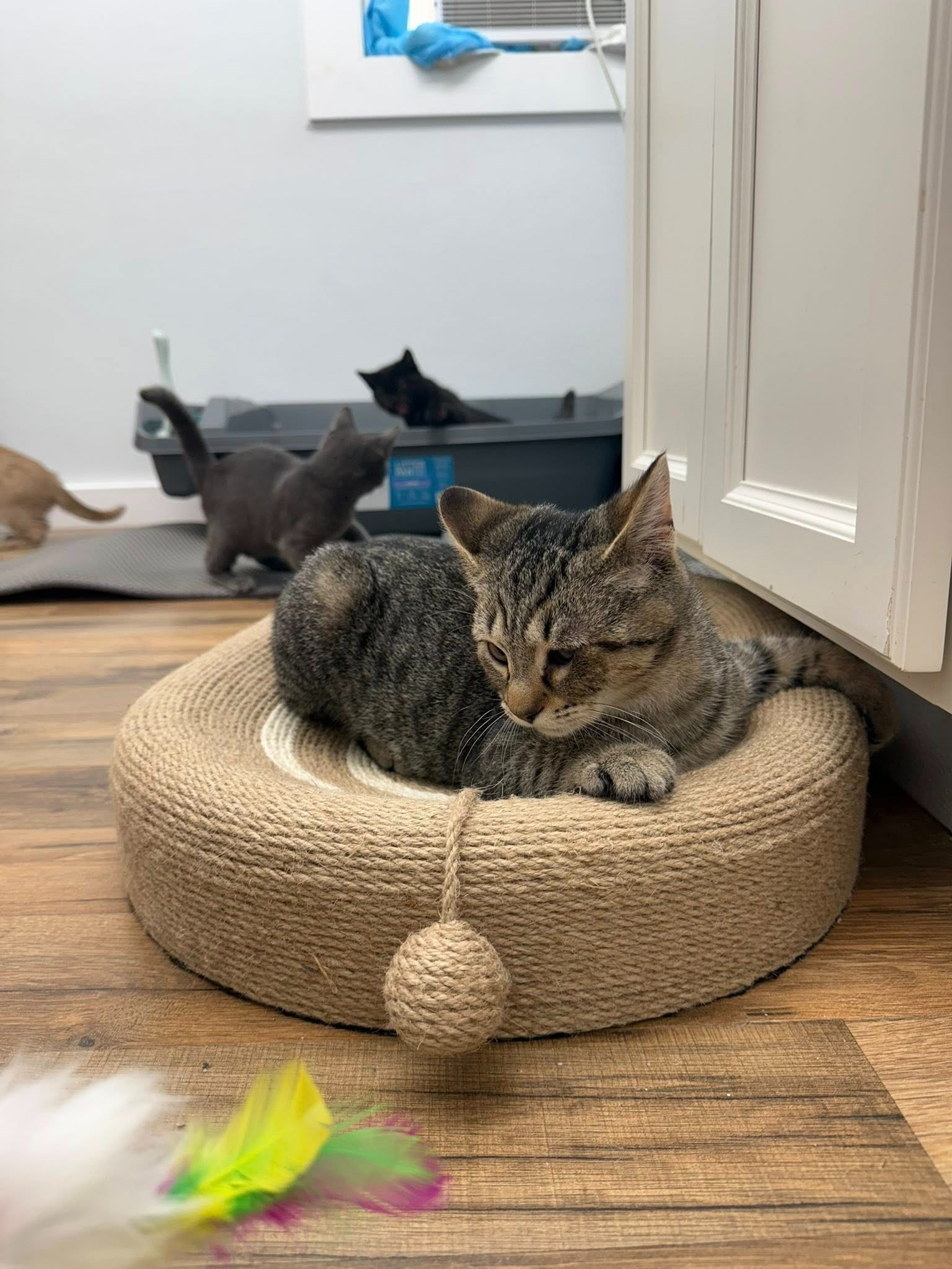 Would any of our amazing supporters be willing to send some cat toys, scratchers and towers our way? The open side of Calla’s Kitty Shed is quite boring, they have since destroyed everything I temporarily purchased for them as they are rambunctious little kittens. I would also like to replace the tower as it was used & is now leaning. Any wall climbing things as well would be greatly appreciated so they can run and play to their little hearts desire. Thank you all in advance, we just don’t have the extra funds right now to spend on putting cat furniture in the room.